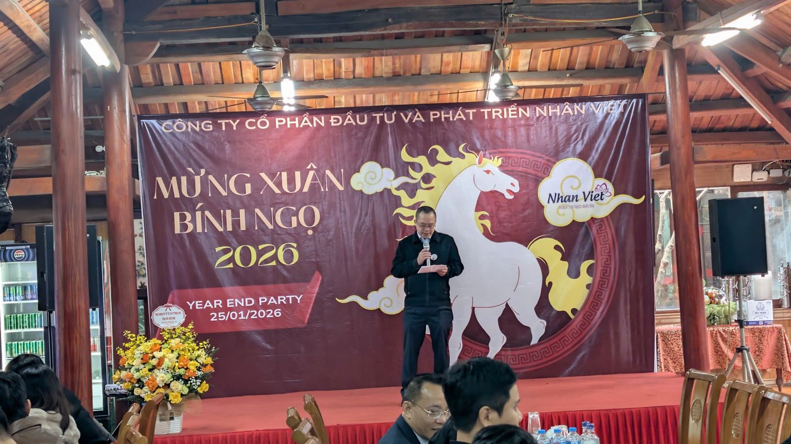 Ngày 25/01/2026, Công ty Cổ Phần Đầu tư và Phát triển Nhân Việt đã tổ chức thành công đại tiệc Tất niên 2025 (Year End Party 2025) với chủ đề "Kết nối sức mạnh - Kiến tạo tương lai". Buổi lễ là khoảnh khắc xúc động để toàn thể CBNV nhìn lại một năm 2025 đầy tự hào trong sứ mệnh cung ứng nguồn nhân lực chất lượng cho thị trường quốc tế.